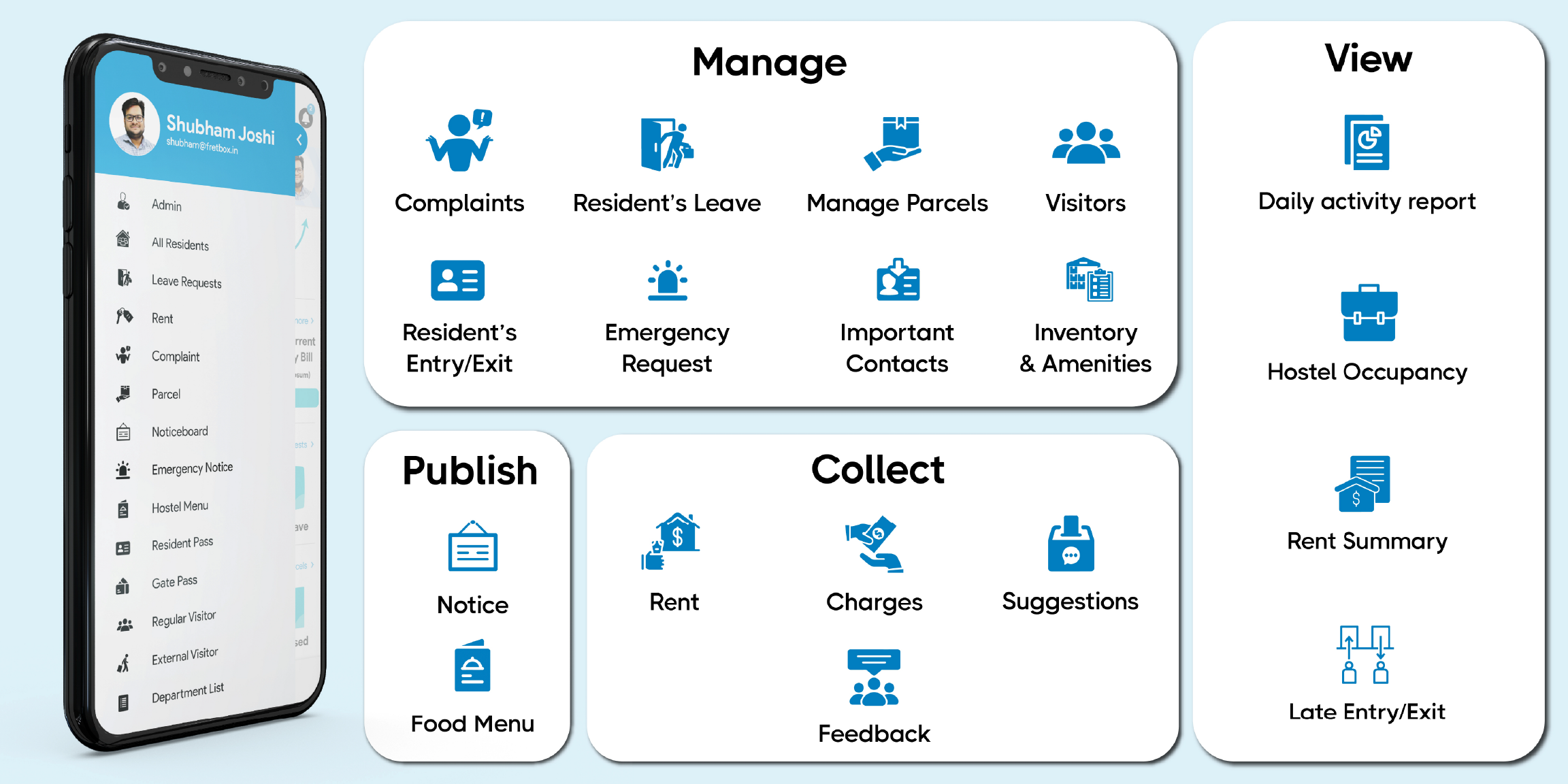 Fretbox (Fretbox.in) has been designed keeping in mind every type of work and problems related to hostel eco-system.